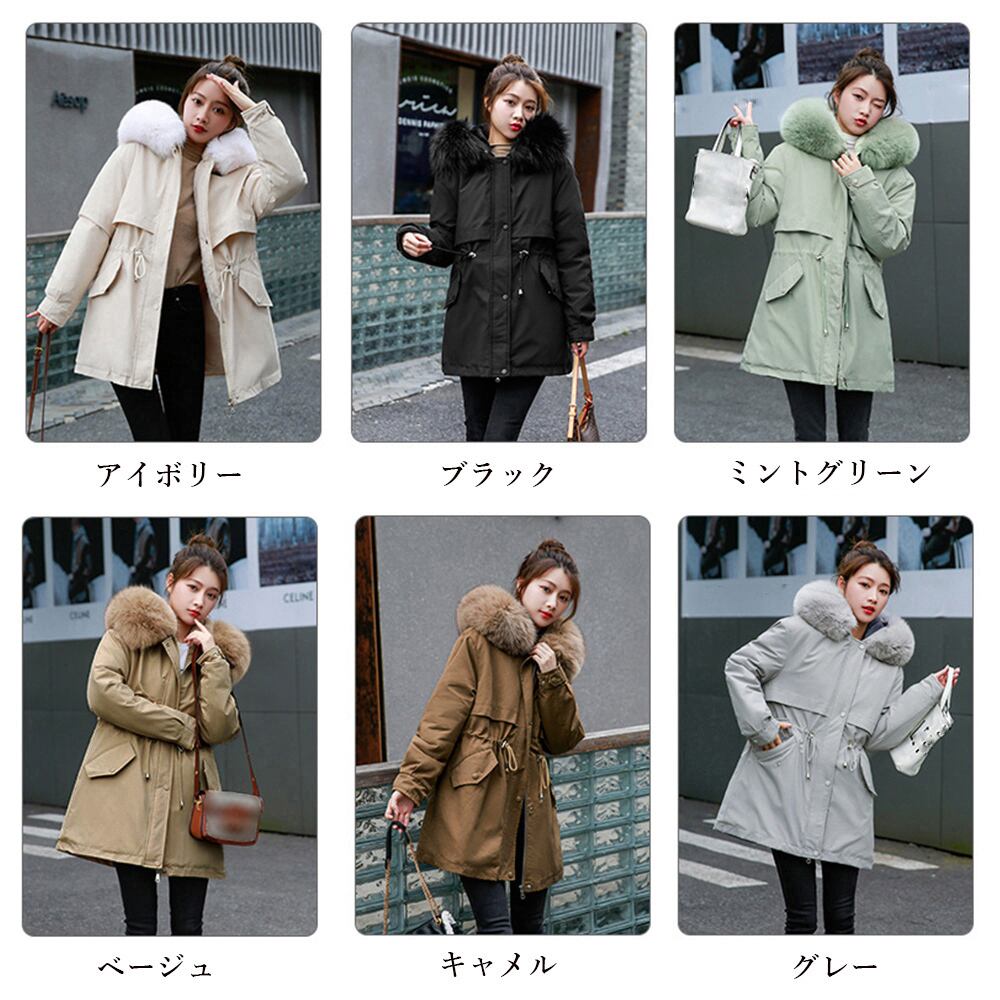 フーデッドコートファー付き フェイクファー パーカーコート ウエストマーク アウター あったか 防寒ジャンバー 韓国6色