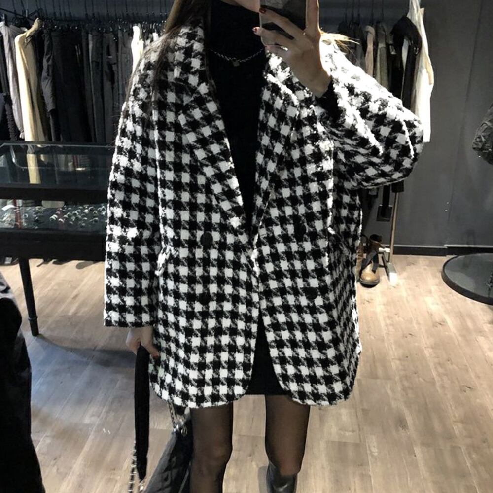 冬服羽織 おしゃれ ミディアム丈コート チェックコート韓国