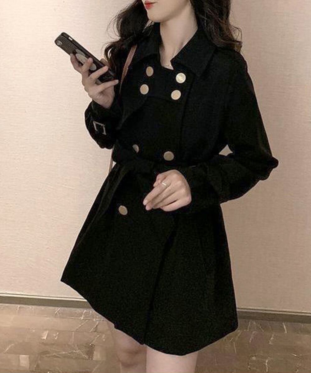 フェミニンコート黒 ダブルボタン着やせ 大人女性ジャケット