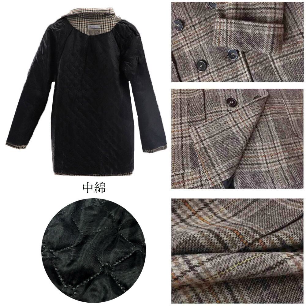 チェックコート レディース グレンチェック テーラードジャケット冬物 中綿入り