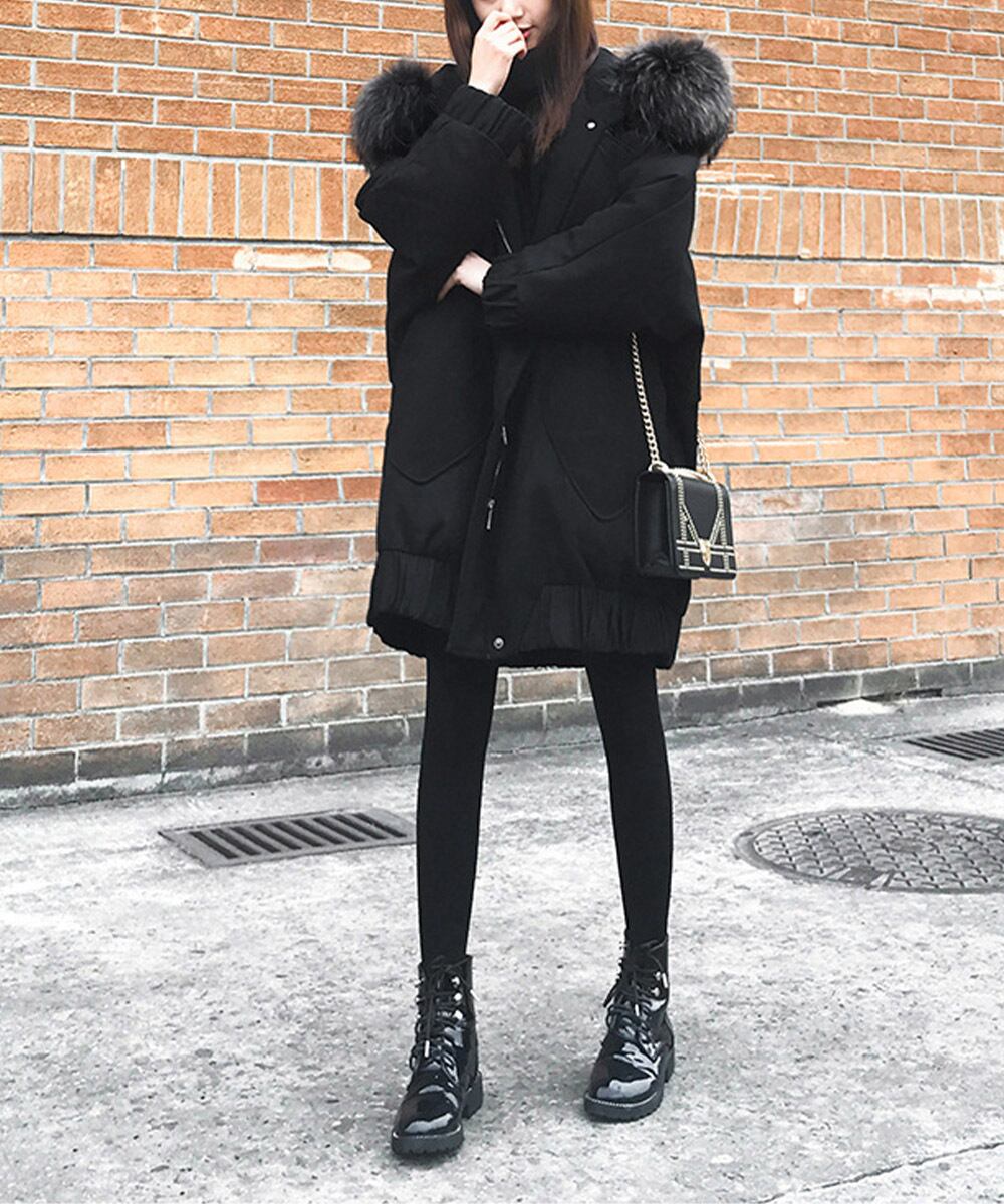 高見え冬服ゆったり あったかアウター黒 通勤通学ミニコート