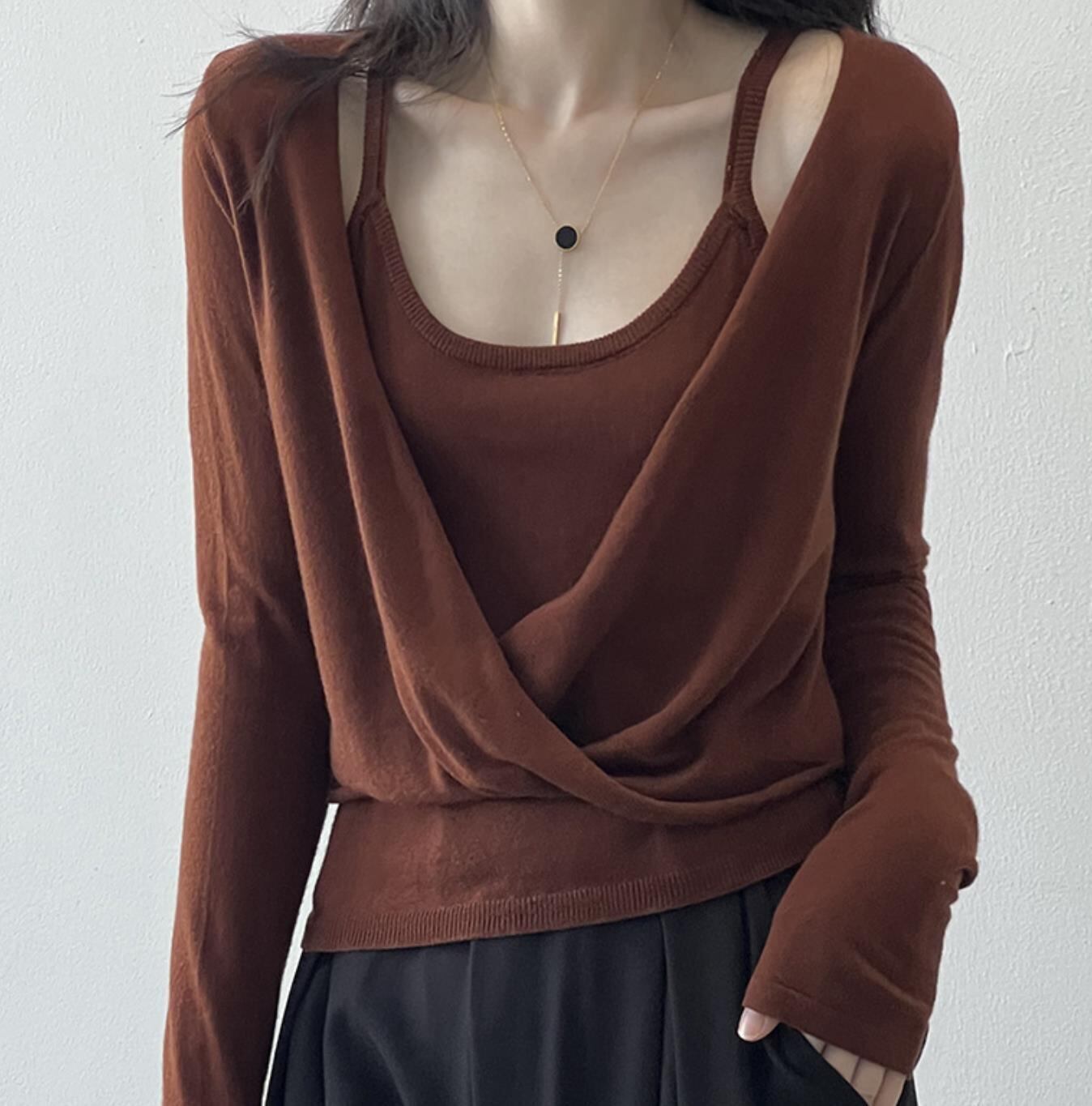 トップス レディース 二点セット 通勤 カットソー キャミソール 5色